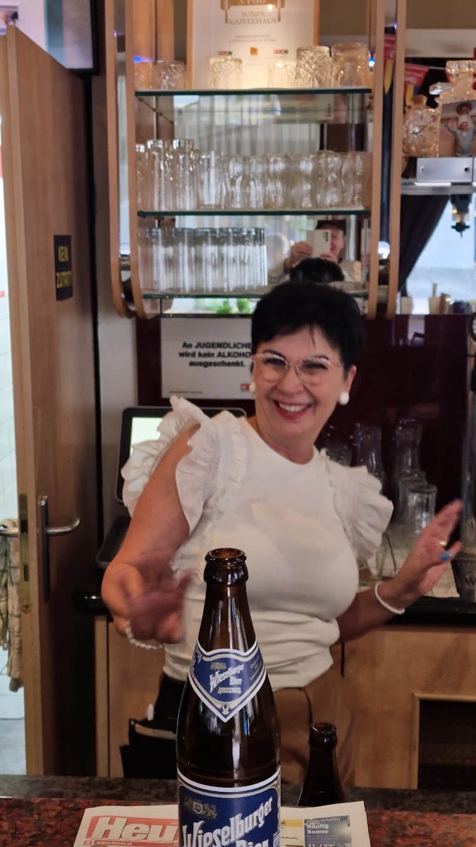 The place is very original and will be relevant to you if you live nearby. For me this is a classic Austrian cafe. The waiters are very simple and pleasant to talk to, their temperament is a little reminiscent of Italy) but you should also be in a good mood) Quality beer – always! There are delicious infusions. I haven't tried the cuisine