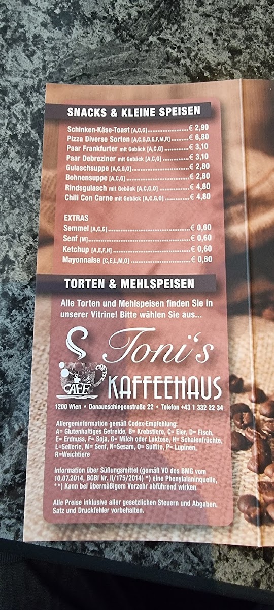 Toni’s Kaffeehaus is a charming café nestled in the heart of Wien, located at Donaueschingenstraße 22. This quintessential Austrian café offers a warm, inviting atmosphere that's perfect for locals and visitors alike. A true gem for breakfast or afternoon coffee, its lovely interior enhances the experience while keeping prices pleasant.
